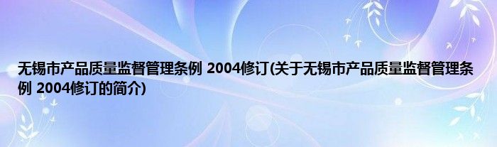 大家好,无锡市产品质量监督管理条例 2004修订,关于无锡市产品质量监督管理条例 2004修订的简介很多人还不知道,现在让我们一起来看看吧!