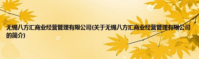 本文关于无锡八方汇商业经营管理有限公司的简介就讲解完毕,希望对大家有所帮助。