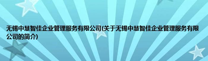 本文关于无锡中慧智佳企业管理服务有限公司的简介就讲解完毕,希望对大家有所帮助。
