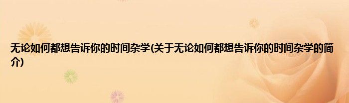 大家好,无论如何都想告诉你的时间杂学,关于无论如何都想告诉你的时间杂学的简介很多人还不知道,现在让我们一起来看看吧!