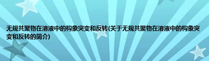 大家好,无规共聚物在溶液中的构象突变和反转,关于无规共聚物在溶液中的构象突变和反转的简介很多人还不知道,现在让我们一起来看看吧!
