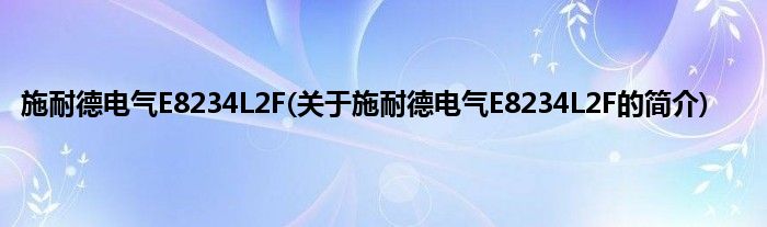 大家好,施耐德电气E8234L2F,关于施耐德电气E8234L2F的简介很多人还不知道,现在让我们一起来看看吧!