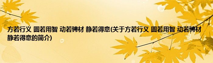 方若行义 圆若用智 动若骋材 静若得意(关于方若行义 圆若用智 动若骋材 静若得意的简介)