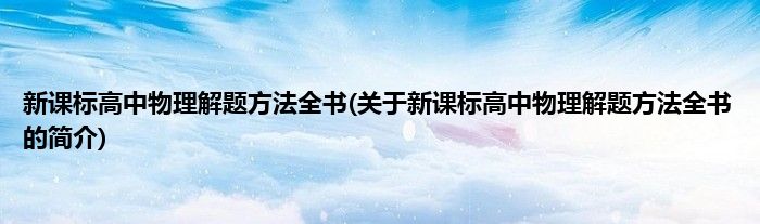本文关于新课标高中物理解题方法全书的简介就讲解完毕,希望对大家有所帮助。
