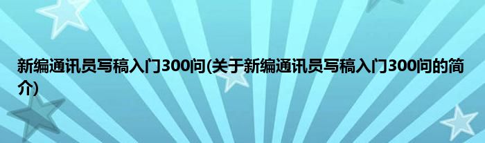 本文关于新编通讯员写稿入门300问的简介就讲解完毕,希望对大家有所帮助。