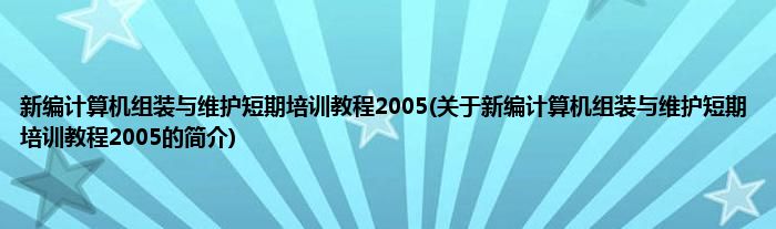 大家好,新编计算机组装与维护短期培训教程2005,关于新编计算机组装与维护短期培训教程2005的简介很多人还不知道,现在让我们一起来看看吧!