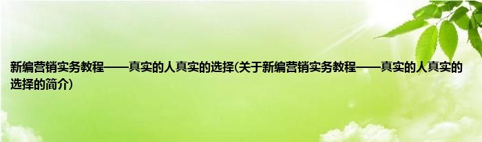本文关于新编营销实务教程——真实的人真实的选择的简介就讲解完毕,希望对大家有所帮助。