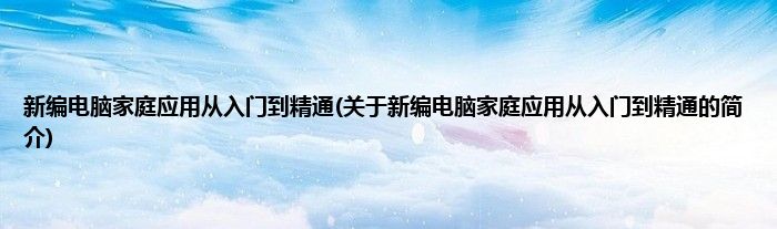 大家好,新编电脑家庭应用从入门到精通,关于新编电脑家庭应用从入门到精通的简介很多人还不知道,现在让我们一起来看看吧!