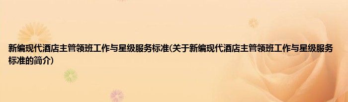 大家好,新编现代酒店主管领班工作与星级服务标准,关于新编现代酒店主管领班工作与星级服务标准的简介很多人还不知道,现在让我们一起来看看吧!