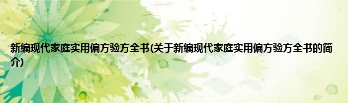 本文关于新编现代家庭实用偏方验方全书的简介就讲解完毕,希望对大家有所帮助。