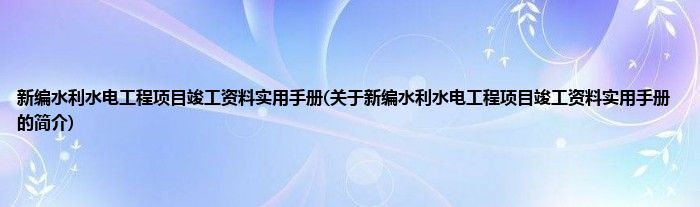 本文关于新编水利水电工程项目竣工资料实用手册的简介就讲解完毕,希望对大家有所帮助。