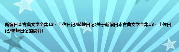 本文关于新编日本古典文学全集13・土佐日记/蜻蛉日记的简介就讲解完毕,希望对大家有所帮助。