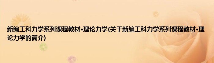 本文关于新编工科力学系列课程教材·理论力学的简介就讲解完毕,希望对大家有所帮助。
