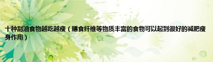 大家好,小科来为大家解答以上问题。十种刮油食物越吃越瘦,膳食纤维等物质丰富的食物可以起到很好的减肥瘦身作用很多人还不知道,现在让我们一起来看看吧!