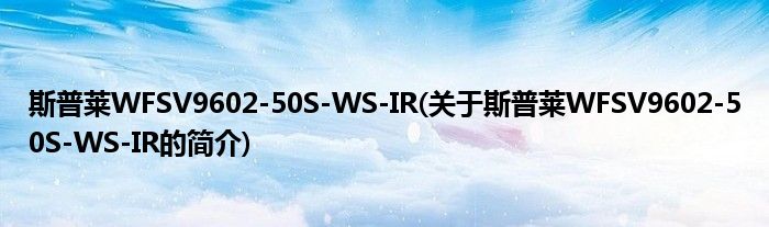 斯普莱WFSV9602-50S-WS-IR(关于斯普莱WFSV9602-50S-WS-IR的简介)