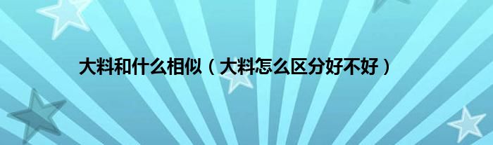 一、 大料怎么区分好不好