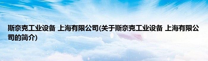 本文关于斯奈克工业设备 上海有限公司的简介就讲解完毕,希望对大家有所帮助。