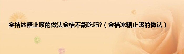 大家好,小科来为大家解答以上问题。金桔冰糖止咳的做法金桔不能吃吗?,金桔冰糖止咳的做法很多人还不知道,现在让我们一起来看看吧!