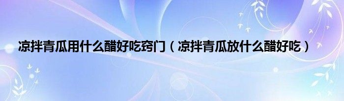 大家好,小科来为大家解答以上问题。凉拌青瓜用什么醋好吃窍门,凉拌青瓜放什么醋好吃很多人还不知道,现在让我们一起来看看吧!