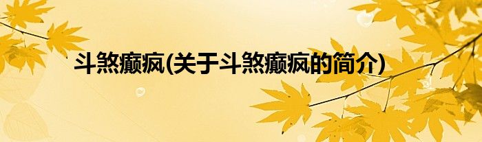 大家好,斗煞癫疯,关于斗煞癫疯的简介很多人还不知道,现在让我们一起来看看吧!