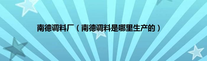 大家好,小科来为大家解答以上问题。南德调料厂,南德调料是哪里生产的很多人还不知道,现在让我们一起来看看吧!