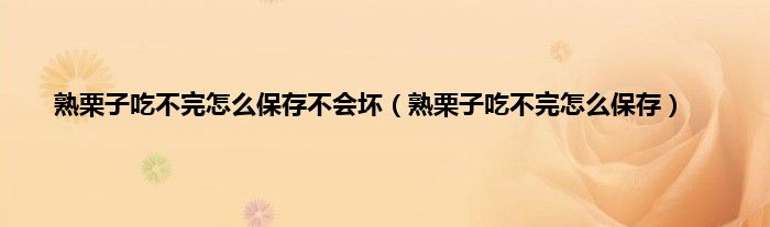 一、 熟栗子吃不完怎么保存