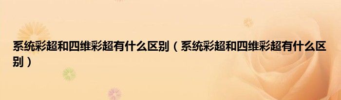 大家好,小科来为大家解答以上问题。系统彩超和四维彩超有什么区别,系统彩超和四维彩超有什么区别很多人还不知道,现在让我们一起来看看吧!