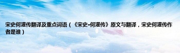 大家好,小常来为大家解答以上问题。宋史何灌传翻译及重点词语,《宋史·何灌传》原文与翻译,宋史何灌传作者是谁很多人还不知道,现在让我们一起来看看吧!