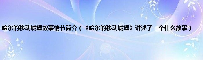 剧情简介故事背景为19世纪末期的欧洲,荒地中出现了一座会移动的城堡,人们纷纷相传城堡的主人哈尔是个邪恶的巫师,他专门掳掠美丽年轻的姑娘并且吸食她们的灵魂.在故事中,女主人公苏菲所居住的小镇周围人们发现了哈尔的移动城堡.18岁的苏菲和继母以及妹妹居住在一个欧洲的小镇中,自从父亲死后,继母凡妮就把女儿们安排到原本由父亲经营的制帽小店营生,但是苏菲的妹妹却对这并不敢兴趣,于是很快离开了制帽店,而苏菲则坚持留了下来.因为这是父亲的最爱.一次,苏菲在看望妹妹的路上遇到了一个神秘男子-哈尔,哈尔和苏菲受到了荒野女巫的追捕,不过在神秘的哈尔的帮助下逃离了险境.苏菲对妹妹说她爱上了哈尔,使得当天晚上,荒地的巫女出现在了苏菲经营的制帽小店中,并对苏菲下了诅咒,使之变成了一个90岁的老太太,苦处无处诉说,于是便只能离家出走,在空旷的荒地上,遇见了神秘的稻草人,并且为了躲避大风,被引进了神秘的哈尔移动城堡,并且以一个清洁工的名义居住了下来.并在那里结识了趋势城堡移动的魔力来源的火焰恶魔卡西法,小男孩马鲁克,稻草人卡普以及男主人公哈尔并且安顿了下来.城堡的主人魔法师哈尔拥有神奇的力量,就象这个国家所有的魔法师一样,他接受了国王的号召,用自己的魔法帮助国家进行一场战争。哈尔常常在黄昏后才精疲力尽地回到自己的城堡。直到有一天,哈尔对苏菲说出了自己的心声,苏菲决定帮助哈尔,在去王宫的路上,苏菲遇到了荒地女巫,原来这是个陷阱,因为哈尔与荒野女巫不愿意帮助国王战斗,莎莉曼便杀死了荒野女巫的恶魔,收回了她的魔法,让她变成了一个普通的老婆婆,而哈尔也因为放心不下苏菲来到了王宫,当莎莉曼使出魔法要杀死卡西法收回哈尔的魔法时,苏菲冲了上来救了哈尔.哈尔为了让其他人平安逃走,一人独自面对追兵,此时内心爱着哈尔的苏菲不忍让哈尔一人受难并决心与哈尔一同面对,于是便驱使着移动城堡追寻哈尔的足迹,而此时的哈尔,已经渐渐失去了意识,变成了一只只会战斗保护苏菲的怪物.经过了这一连串事故后,偶然间苏菲通过戒指的指引发现了随意门并回到了哈尔的过去,并且了解到哈尔为了得到强大的魔法,而来到流星结束生命的地方,流星卡西法不愿就这样死去便与哈尔签定了契约.让火之恶魔卡西法的魔力为他所用,但是自己的心脏也将成为这个契约的交换品,由此来保证卡西法的生命.故事的最后,苏菲拯救了奄奄一息的哈尔,破除了哈尔与卡西法之间的约定并且帮助哈尔找会了自己心脏,同时自己身上的诅咒也被解除,而稻草人卡普在苏菲的亲吻下也摆脱了复杂的诅咒-原来他就是邻国王子,并且答应回国后就停止战争.虽然摆脱了契约的束缚,卡西法仍然留恋和他们在一起的生活,于是在他的驱使下,会飞的移动城堡搭载着苏菲与哈尔一行,过上了和平而幸福的生活.
