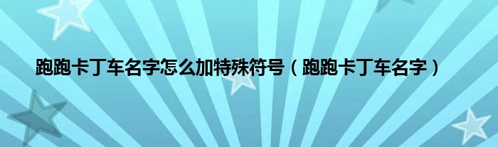 大家好,小常来为大家解答以上问题。跑跑卡丁车名字怎么加特殊符号,跑跑卡丁车名字很多人还不知道,现在让我们一起来看看吧!