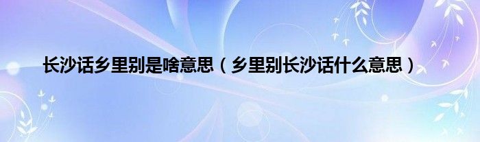 大家好,小常来为大家解答以上问题。长沙话乡里别是啥意思,乡里别长沙话什么意思很多人还不知道,现在让我们一起来看看吧!