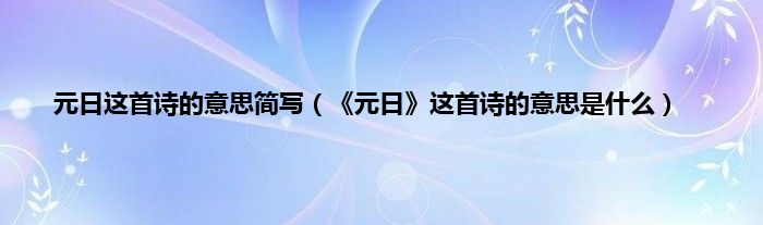 大家好,小常来为大家解答以上问题。元日这首诗的意思简写,《元日》这首诗的意思是什么很多人还不知道,现在让我们一起来看看吧!