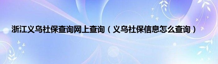 大家好,小常来为大家解答以上问题。浙江义乌社保查询网上查询,义乌社保信息怎么查询很多人还不知道,现在让我们一起来看看吧!
