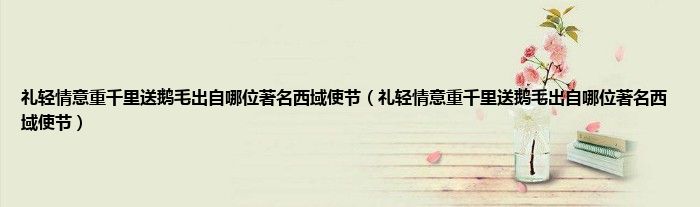 大家好,小常来为大家解答以上问题。礼轻情意重千里送鹅毛出自哪位著名西域使节,礼轻情意重千里送鹅毛出自哪位著名西域使节很多人还不知道,现在让我们一起来看看吧!