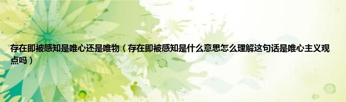 大家好,小常来为大家解答以上问题。存在即被感知是唯心还是唯物,存在即被感知是什么意思怎么理解这句话是唯心主义观点吗很多人还不知道,现在让我们一起来看看吧!