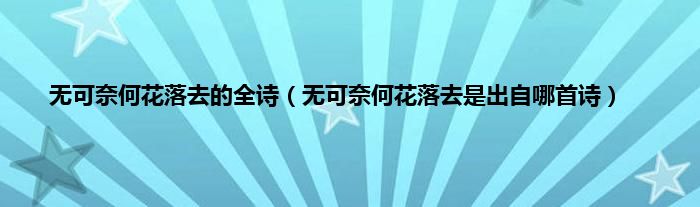 大家好,小常来为大家解答以上问题。无可奈何花落去的全诗,无可奈何花落去是出自哪首诗很多人还不知道,现在让我们一起来看看吧!