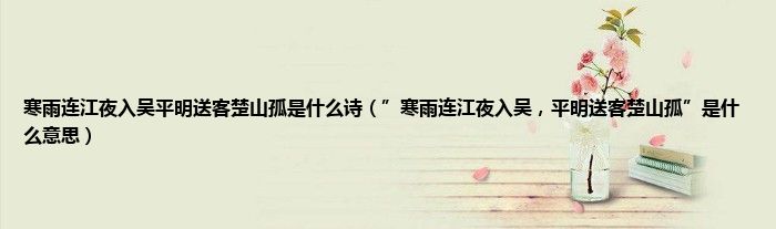 意思是:冷雨洒满江天的夜晚,我来到吴地,天明送走好友后,只留下楚山的孤影。出自唐代王昌龄《芙蓉楼送辛渐二首(其一)》,原文为:寒雨连江夜入吴,平明送客楚山孤。洛阳亲友如相问,一片冰心在玉壶。译文:冷雨洒满江天的夜晚,我来到吴地,天明送走好友后,只留下楚山的孤影。到了洛阳,如果有亲友向您打听我的情况,就请转告他们,我的心依然像玉壶里的冰一样纯洁,未受功名利禄等世情的玷污。注释:1、芙蓉楼:原名西北楼,登临可以俯瞰长江,遥望江北,在润州(今江苏省镇江市)西北。2、辛渐:诗人的一位朋友。3、寒雨:秋冬时节的冷雨。4、连江:雨水与江面连成一片,形容雨很大。5、吴:古代国名,这里泛指江苏南部、浙江北部一带。江苏镇江一带为三国时吴国所属。6、平明:天亮的时候。7、楚山:楚山:楚地的山。这里的楚也指镇江市一带,因为古代吴、楚先后统治过这里,所以吴、楚可以通称。8、洛阳:现位于河南省西部、黄河南岸。9、冰心:比喻纯洁的心。10、玉壶:道教概念妙真道教义,专指自然无为虚无之心。