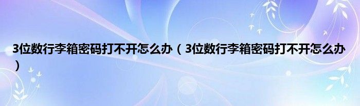 大家好,小科来为大家解答以上问题。3位数行李箱密码打不开怎么办,3位数行李箱密码打不开怎么办很多人还不知道,现在让我们一起来看看吧!