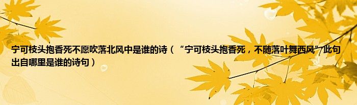大家好,小常来为大家解答以上问题。宁可枝头抱香死不愿吹落北风中是谁的诗,“宁可枝头抱香死,不随落叶舞西风”此句出自哪里是谁的诗句很多人还不知道,现在让我们一起来看看吧!