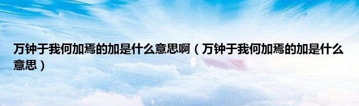 1、加:益处的意思,万钟于我何加焉这句话是指高官厚禄对我有什么好处呢?