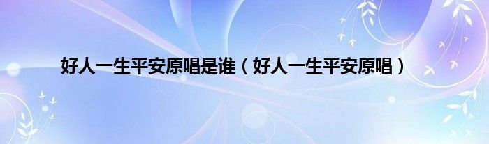 大家好,小常来为大家解答以上问题。好人一生平安原唱是谁,好人一生平安原唱很多人还不知道,现在让我们一起来看看吧!
