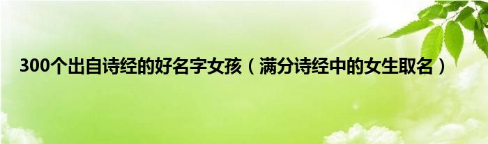 300个出自诗经的好名字女孩(满分诗经中的女生取名)