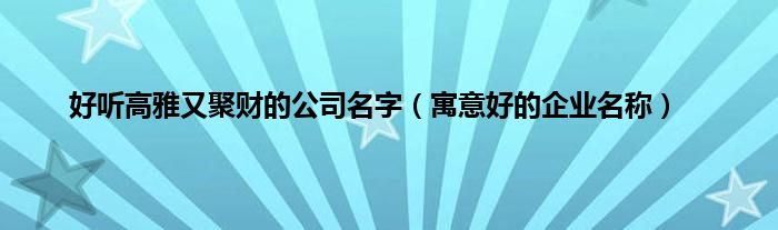 大家好,综合小编来为大家讲解下。好听高雅又聚财的公司名字,寓意好的企业名称这个很多人还不知道,现在让我们一起来看看吧!