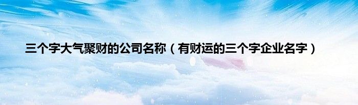 大家好,综合小编来为大家讲解下。三个字大气聚财的公司名称,有财运的三个字企业名字这个很多人还不知道,现在让我们一起来看看吧!