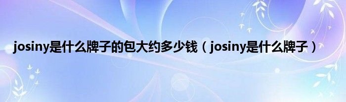 大家好,小科来为大家解答以上问题。josiny是什么牌子的包大约多少钱,josiny是什么牌子很多人还不知道,现在让我们一起来看看吧!