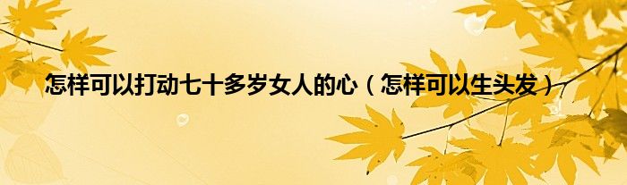 大家好,小科来为大家解答以上问题。怎样可以打动七十多岁女人的心,怎样可以生头发很多人还不知道,现在让我们一起来看看吧!