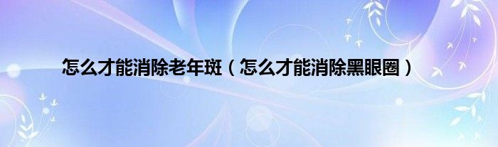 大家好,小科来为大家解答以上问题。怎么才能消除老年斑,怎么才能消除黑眼圈很多人还不知道,现在让我们一起来看看吧!