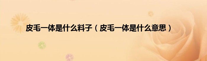 大家好,小科来为大家解答以上问题。皮毛一体是什么料子,皮毛一体是什么意思很多人还不知道,现在让我们一起来看看吧!