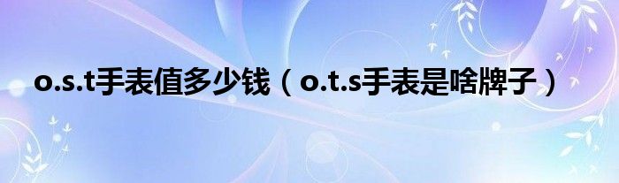 大家好,小科来为大家解答以上问题。o.s.t手表值多少钱,o.t.s手表是啥牌子很多人还不知道,现在让我们一起来看看吧!