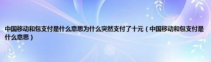 大家好,小常来为大家解答以上问题。中国移动和包支付是什么意思为什么突然支付了十元,中国移动和包支付是什么意思很多人还不知道,现在让我们一起来看看吧!